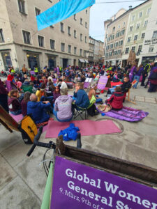 Am Montag folgte am Platzl eine Frauenstreik-Aktion verschiedener Initiativen, darunter des Frauenrats. Zwischen 15 und 17 Uhr wurden Frauen zum bewussten Nichtstun eingeladen, um auf die oft unsichtbare Care-Arbeit aufmerksam zu machen. Kurze Performances und Interventionen begleiteten die Aktion.